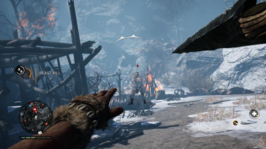 None of this – that mouse issue aside – is to say that Far Cry Primal is a bad game. It’s one that tries to remain Far Cry while doing its own thing, and I applaud it for that, but a lot of the changes aren’t for the better. I like the new environment, but I miss the character. I like the beast taming, but I miss the weapon variety and customisation. I like the uncharted wilderness, but I don’t like how regularly the wildlife fucks with what you’re doing. I like the crafting, but I groan at the amount of resource gathering it requires. I like the bee grenades, but… actually, no, I want bee grenades in everything.