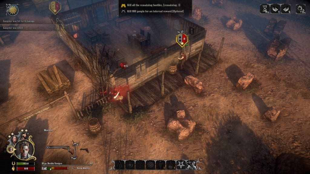 Rather more problematically, there is a serious dearth of enemy types. You’ve basically got enemies with pistols, enemies with shotguns, enemies with rifles, and – occasionally – demons, or one-off foes, and I don’t think I ever saw enemies use abilities. This limits the tactics of the tactical sections pretty significantly, but it’s hidden quite well by the varied objectives and styles of each tactical encounter. Some might have you trying to reach a particular area against heavy opposing forces (with optional objectives to steal supplies en route), while others might task you with capturing a fort and then holding it off against reinforcements. Still: no mounted gatling guns, very few supernatural foes, no horse-riding bandits…