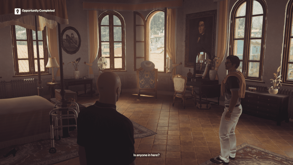 Peter: I’m going to butt in and play Bad Cop now, because while I liked Sapienza a great deal, there were a couple of things that were less wonderful. There’s a persistent bug where subduing a person can sometimes count as a kill; not a huge deal, but it can ruin your otherwise ‘perfect’ run if you somehow don’t notice in time to reload a save. Also, I’m not sure what’s been going on with Hitman’s performance on PC, but this episode ran a whole lot worse than Paris did (in either DX11 or DX12 mode). There are sections out on the golfing lawn, and in Caruso’s mother’s old room, which seem to absolutely tank the frame-rate no matter what settings you’re using. It’s a little bit annoying.