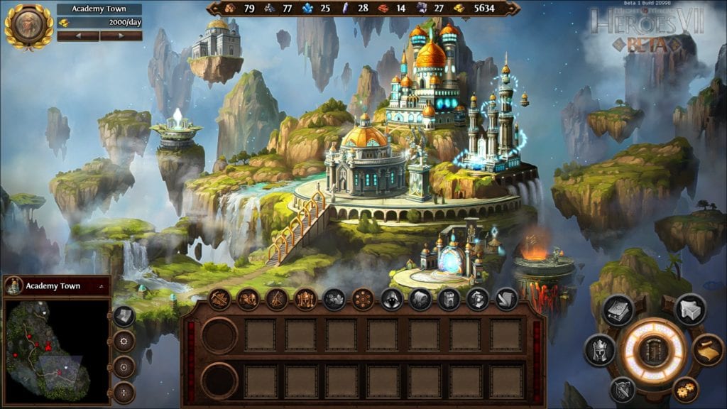 In this Might & Magic Heroes VII closed beta (which ran for just a couple of weeks and finished during E3,) there were just two Skirmish mode maps on offer: a 1v1, and a four player tussle. None of the single player campaign stuff was present, and only two of the six factions (Haven and Academy) were available to play. It was pretty focused on the basic structures of the game.