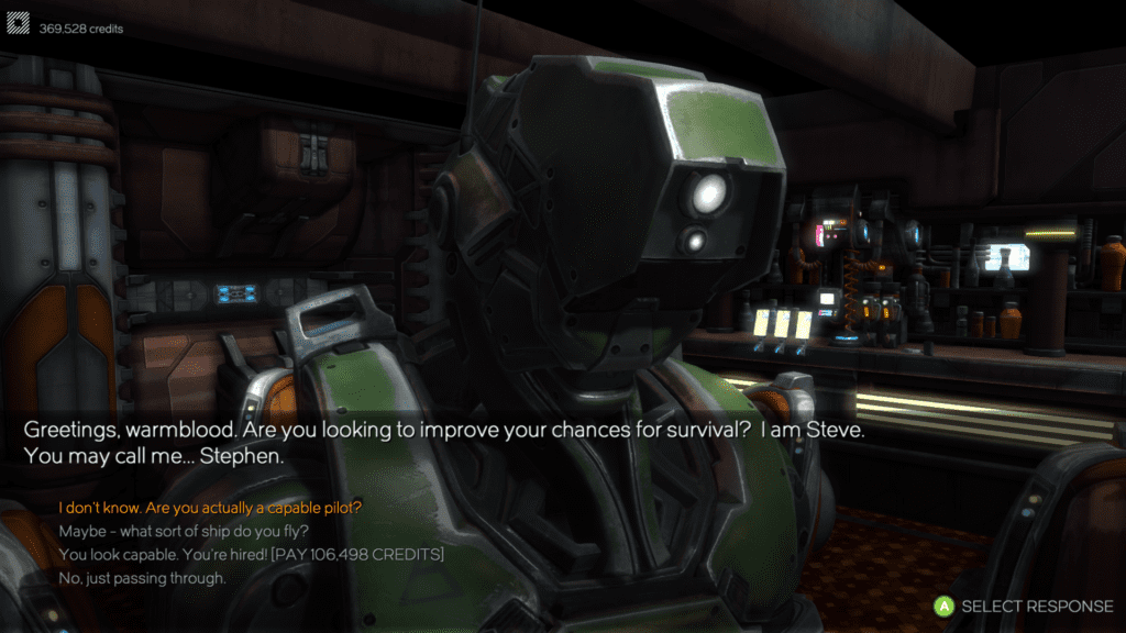 As with most non-linear games of this type, how long it keeps you engaged depends in part on the variety and creativity of activities on offer. It also rests on how long the player is prepared to accept that the stylistic trappings are there to disguise the fairly repetitive process of ‘get more money, upgrade ship a bit more’.