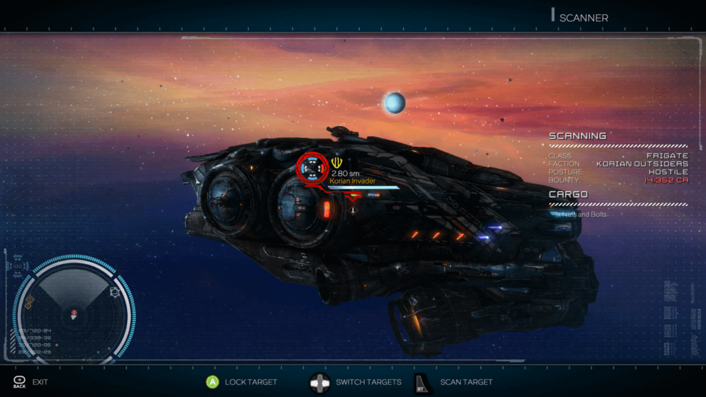 There’s no shortage of ships for the player to use either, with twenty-some unique craft dotted throughout the game’s various specialist space outfitters. Equipment is equally bountiful, with plenty of ways to cover your vessel in weapons, engine boosts and other useful gadgets, each manufactured by companies with evocative names like ‘Old Sun Ballistics’.