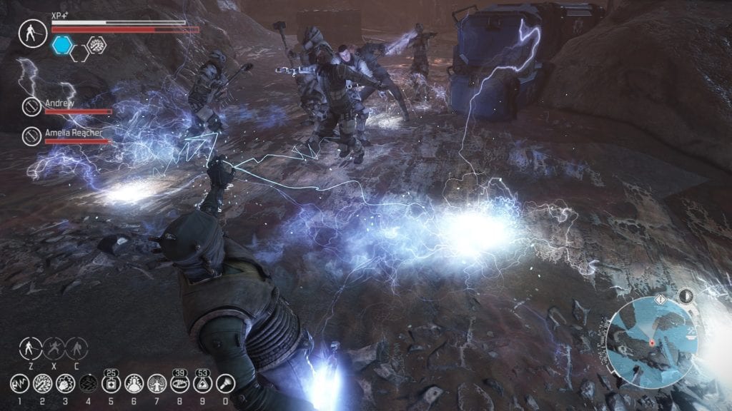 Can you tell who’s on your side in this screenshot? No, neither can I. Thankfully there’s no friendly fire and some Assassin’s Creed-style “point in the direction of the enemy you want to hit” auto-targeting.
