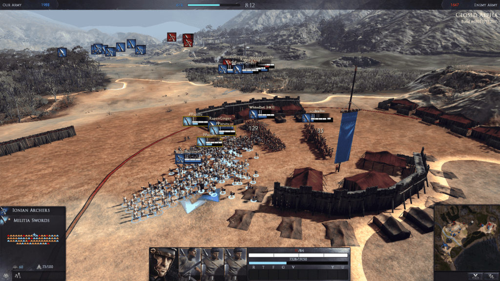 It’s somewhat up to players which three units they take into battle, determined by both the historical commander they’ve chosen and the level of troops they’ve unlocked to date. The Total War: Arena alpha has six playable commanders at present (three Roman, three Greek) with a space for some tribal leaders (Gauls and the like) reserved too. Each gets a corresponding set of troops, which begin with low level melee and ranged options (basic mob militias) and gradually expand through play to allow, say, proper Hoplites (for the Greeks) or Roman noble cavalry.