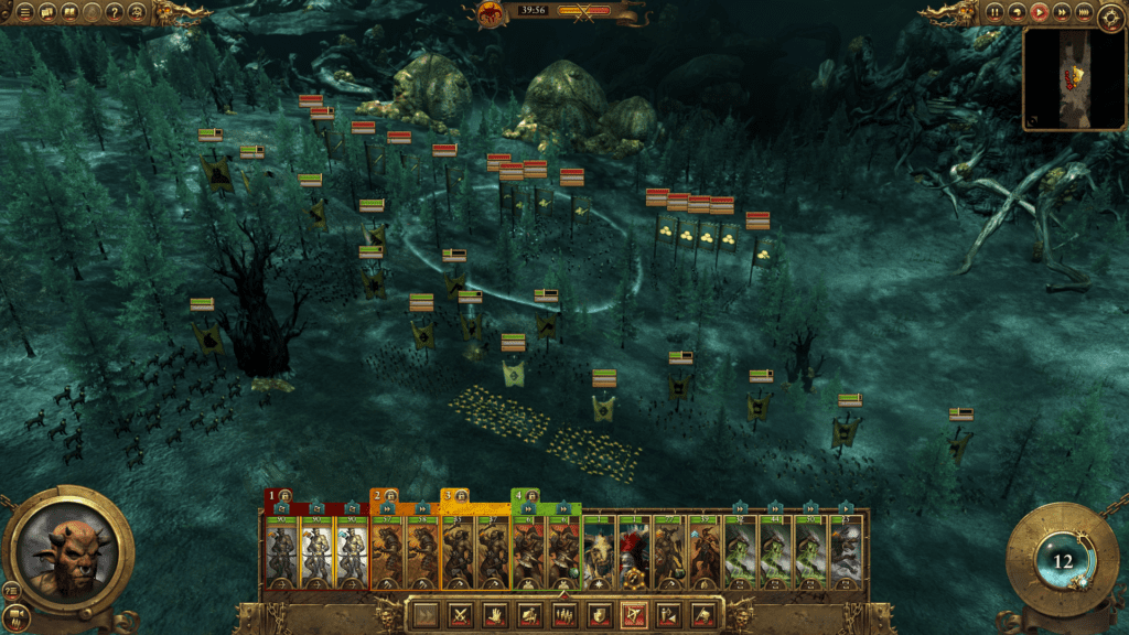 As noted, the horde system works rather well for the cloven-hooved ones. It makes sense for them to be a roaming band, setting up spontaneous camp wherever necessary. The default marching stance for all Beastmen is Ambush, which gives their forces a real hit-and-run feel on the strategy map; particularly if you level up a Lord with ‘Lightning Strike’ (allowing you to deny a target stack nearby reinforcements). Ducking back and forth between recruiting new units and being on the march felt a bit passive when applied to Chaos, but here it’s re-styled as semi-Guerilla warfare. A unique stance, Beast-Paths, lets you move through otherwise impassible forests, opening up opportunities to attack and then vanish into the woods next turn.