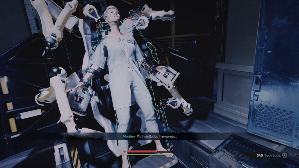 The Surge 2 also has a big suite of implants, which are basically your accessories. Your armor is attached to a mechanical rig that runs off a certain amount of core energy. This energy powers your armor and your implants. If you don’t have enough energy, you can’t equip certain things. Each time you level up, you get a single point of core energy. Every 10 levels net you a new implant slot. Implants are very useful and can change up your play style considerably. They can impact the amount of damage you do to certain types of foes, how much stamina certain actions use, and damage boosts if you’re low on health. There’s a wide variety of these and figuring out your loadout is pretty cool.