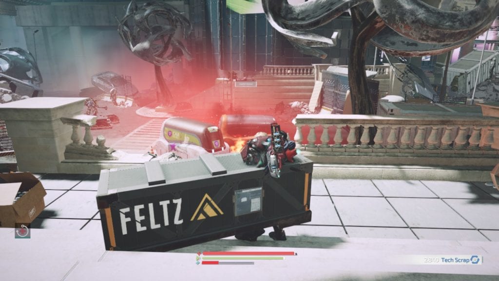 Upgrading your healing consumables helps matters though. Finishers and using injectable implants use up your battery, which increases as you fight enemies. What this means is that, as long as you keep doing damage, you can keep healing. Once you get the hang of this and find a weapon that works for you, this often means that you can keep fighting indefinitely. I actually rather enjoyed this aspect, and it didn’t take the tension out of encounters because the devs gave enemies and bosses so much health that everything basically turns into an endurance match. The final boss, while annoying, wasn’t even that bad all things considered.